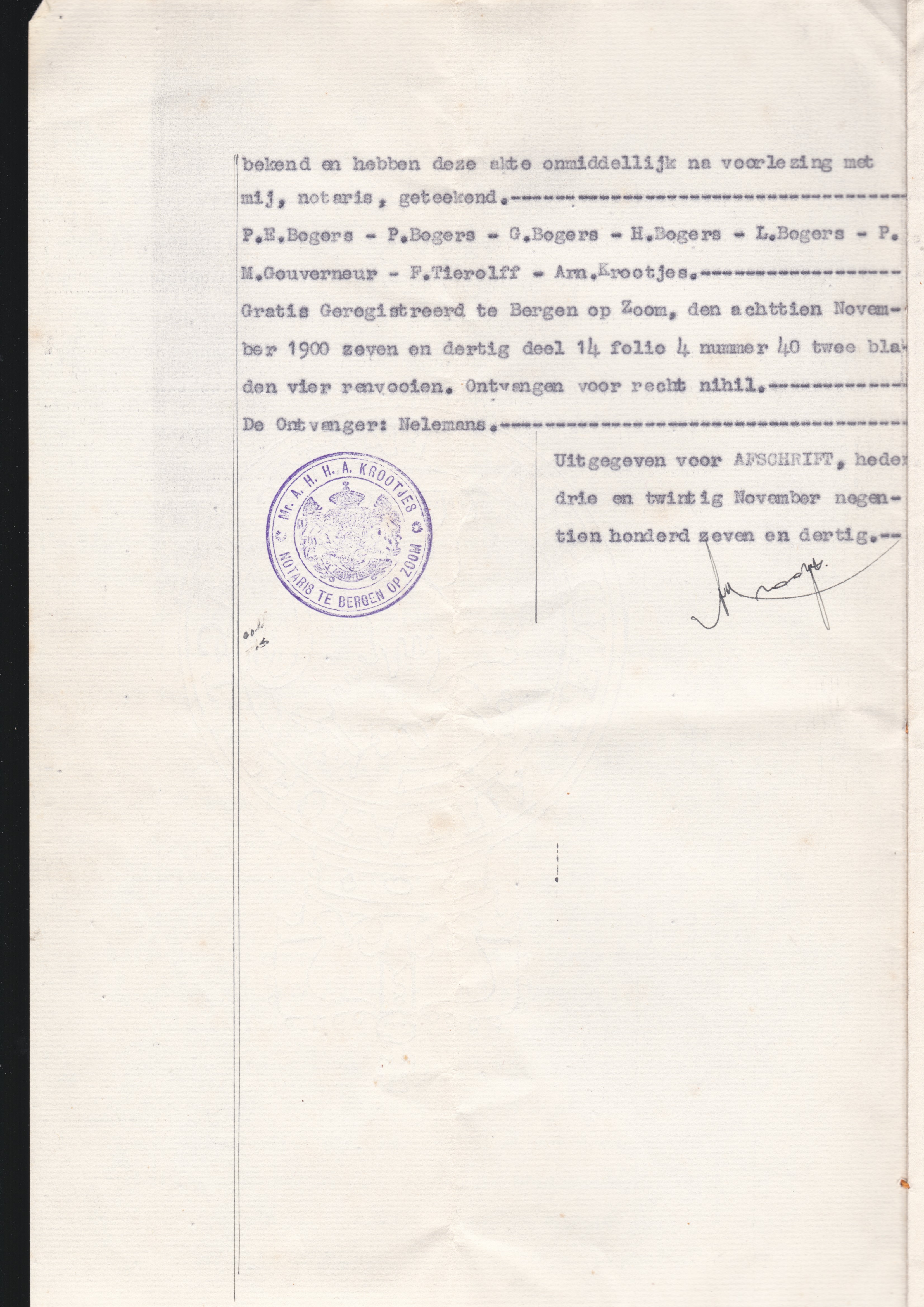 met mij, notaris, geteekend. P.E.Bogers - P.Bogers - G.Bogers - H.Bogers
