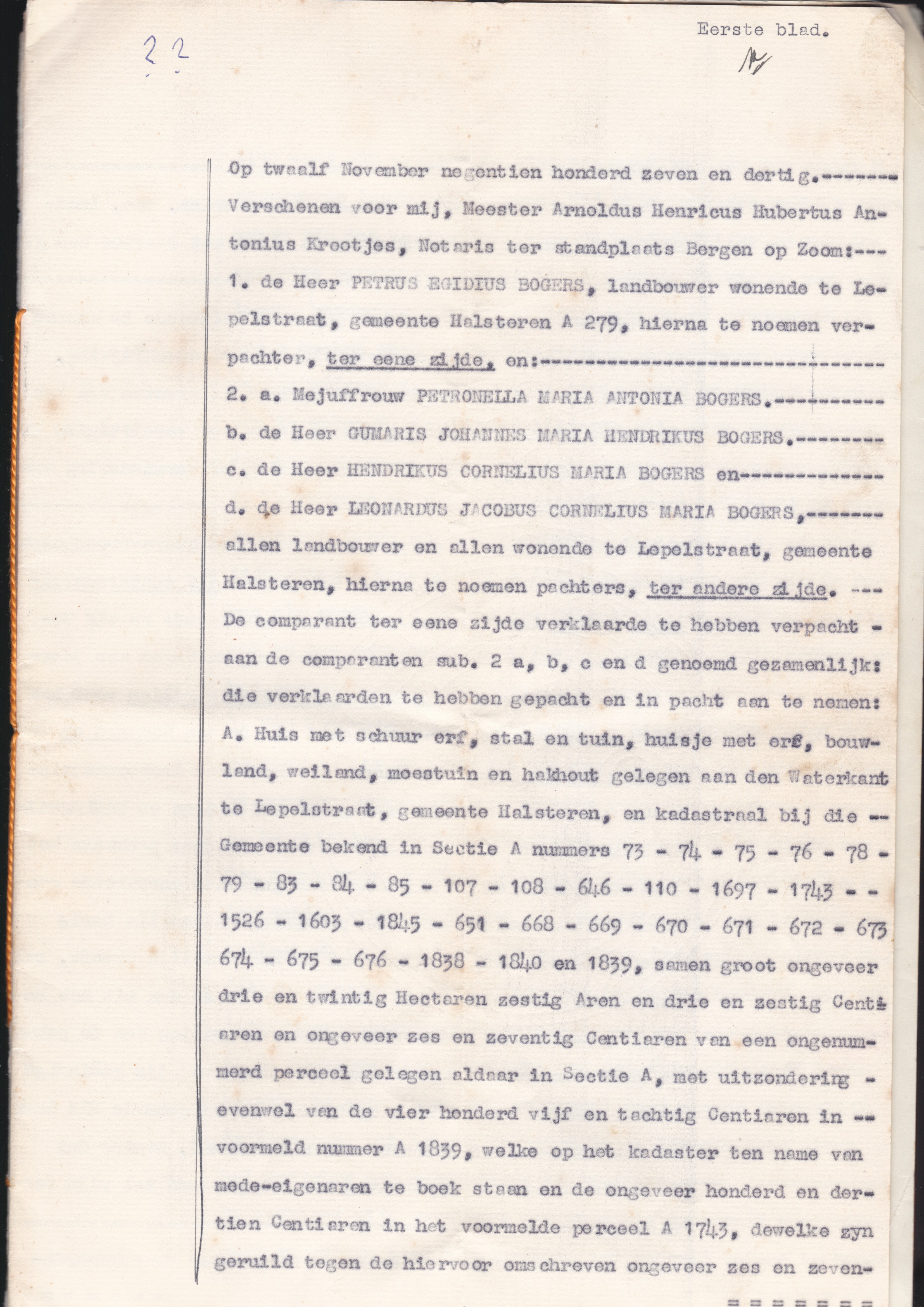 te Lepelstraat, gem. Halsteren. a k t e d.d. 12 November 1937.
